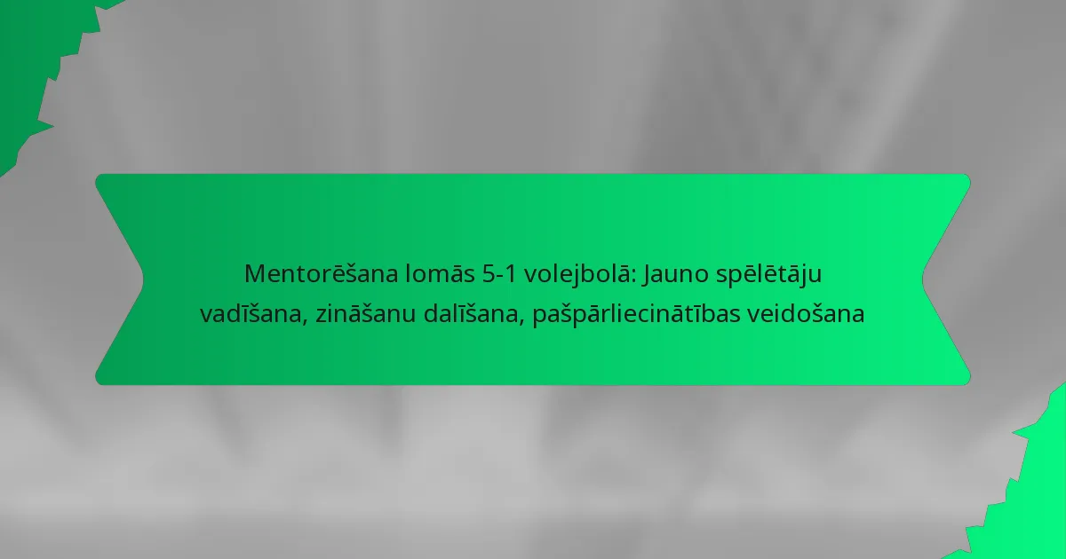 Mentorēšana 5-1 volejbolā ietver pieredzējušu spēlētāju vadību jaunākajiem sportistiem, daloties ar zināšanām un palīdzot viņiem veidot pārliecību gan laukumā, gan ārpus tā. Šī attiecība veicina personīgo un sportisko izaugsmi, uzlabojot kopējo komandas dinamiku.