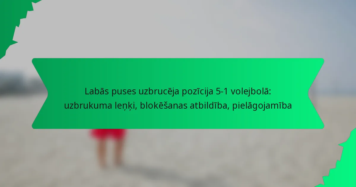 Labās puses uzbrucējs 5-1 volejbola sistēmā ir būtisks gan uzbrukuma, gan aizsardzības stratēģijām. Šī pozīcija prasa meistarību uzbrukuma leņķos, lai optimizētu punktu gūšanas iespējas, vienlaikus uzņemoties nozīmīgas bloķēšanas atbildības. Turklāt pielāgojamība ir svarīga, jo labās puses uzbrucējam ātri jāpielāgojas dažādām spēles situācijām un komandas dinamikai, lai saglabātu efektīvu spēli.
